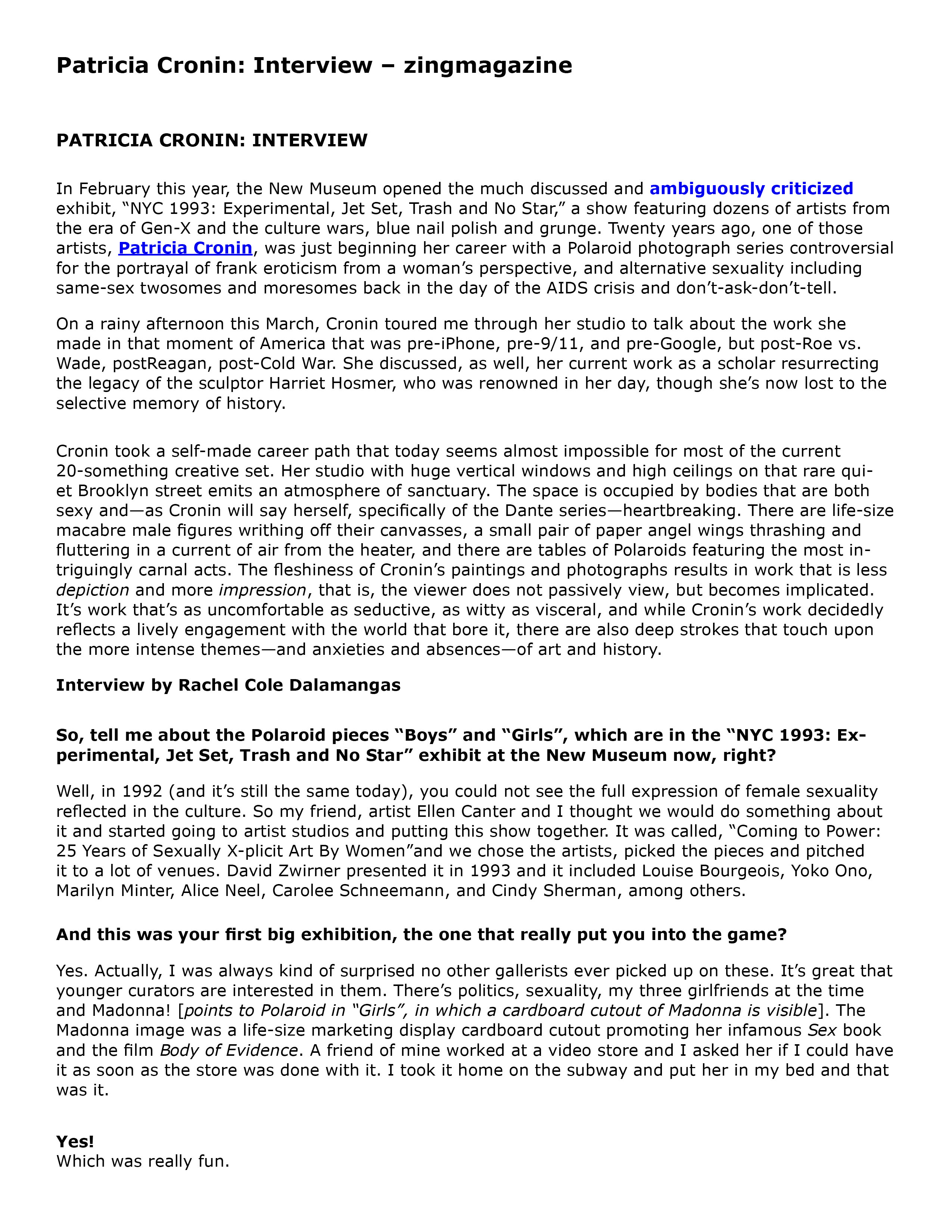 PATRICIA CRONIN: INTERVIEW